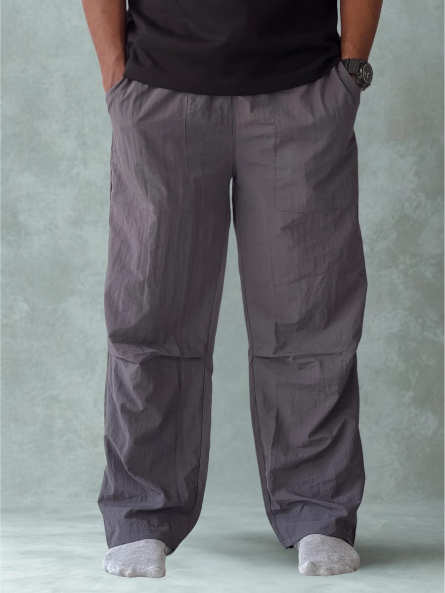 These Men’s Lightweight Charcoal Grey Track Pants deliver the perfect balance of comfort and modern street style. Made from breathable, textured fabric, they feature a relaxed wide-leg silhouette and deep cargo pockets for added utility. Perfect for everyday wear, gym lifestyle, or casual outings.